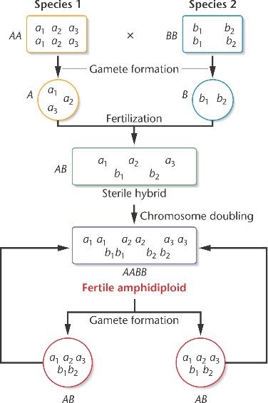 Following chromosome doubling of the sterile hybrid (AB),