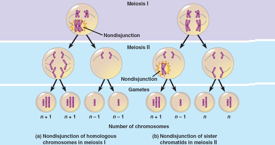 Nondisjunction during meiosis can produce gametes with an extra or missing chromosome, or aneuploidy.